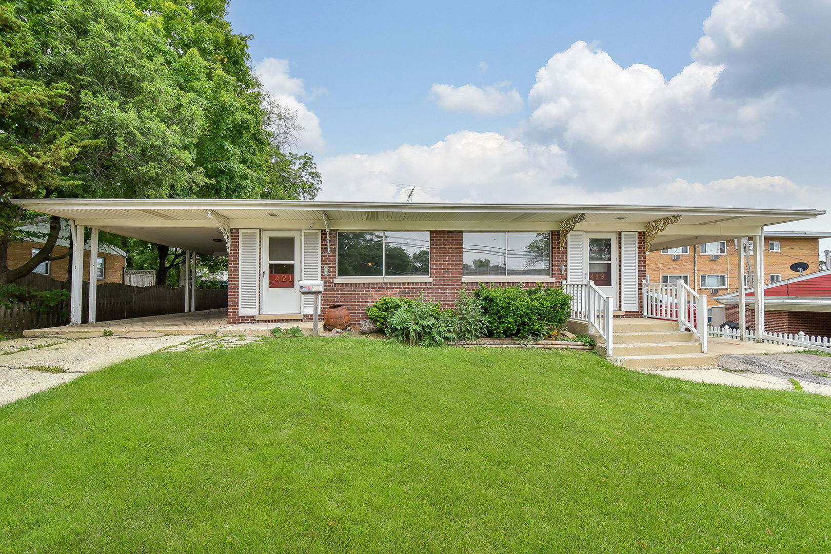 Mulitple offers received. Highest & best due by noon on Sunday June 9th. Unfortunately no more showings are available for 419 Stoddard. Please do not disturb the tenant nor look in his windows. Showings for 421 Stoddard by confimration with LA. Thank you for your cooperation! Remarkable opportunity to purchase a duplex at the edge of Wheaton College’s campus and within a block of the Metra Train station to Chicago. Never before offered on the public market, the brick ranch building sits on a 80′ x 157′ lot. It has one PIN number and is being sold as a single building. Both sides of the duplex are about 1000 sq ft with two bedrooms & two baths. 421 sits on a slab while 419 has a full basement. The ideal buyer for this property understands the value of location and rental income with its proximity to the college. Both sides need work and the building needs a new roof. The first set of photos is virtually staged illustrating how the home can look with new paint, flooring and modern decor. The second set of photos are current condition. Furnishings in the second set are temporary. Kitchen, baths and basement in photos are accurate condition. Both sides of home have a slider to the back yard through one of the bedrooms. Wouldn’t the huge yard would be greatly enhanced with a patio?! The shed at the back of the lot line is included and a fence may be added on the rear lot line to add privacy if desired. Outstanding location close to all the wonderful sports, art, drama and concerts the College has to offer. And a very reasonable distance to both downtown Wheaton and Glen Ellyn with all their delectable restauarants, shopping and summer concerts!