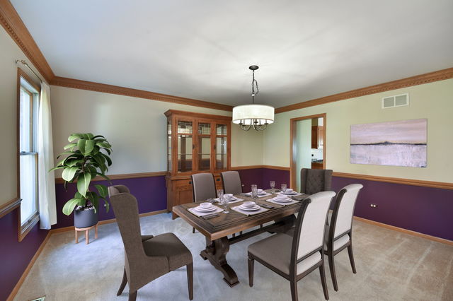 This warm and inviting 4 bedroom, 3.5 bath home is a perfect blend of elegance and functionality. The spacious foyer welcomes family and friends for joyous holiday gatherings. An abundance of natural light flows throughout the main level and beckons guests to the heart of the home. The kitchen features a center island with ample cabinetry and granite countertops, stainless appliances and a pantry. The adjacent family room with its cozy fireplace creates wonderful ambiance. Both the living room and formal dining rooms are easily accessible making entertaining a breeze. Or, outside enjoy the multi level deck and gazebo. A main level office/ den is next to the laundry and guest bath. Could this area be converted to a “granny suite” if there was a future need? Upstairs the primary suite has a stunning, refreshed spa bath, sitting room and large walk in closet. Three additional good size bedrooms with great closet space, a hall bath and linen closet complete the second floor. The lower level was recently updated and boasts a large rec room, game area, kitchenette, full bath, and flex space which could be used as a home gym, dance studio or home office. There is lots of storage space too. The three car, side load garage is heated. Dual zoned HVAC, newly painted exterior and close to Wheaton Academy. A wonderful place to call HOME!